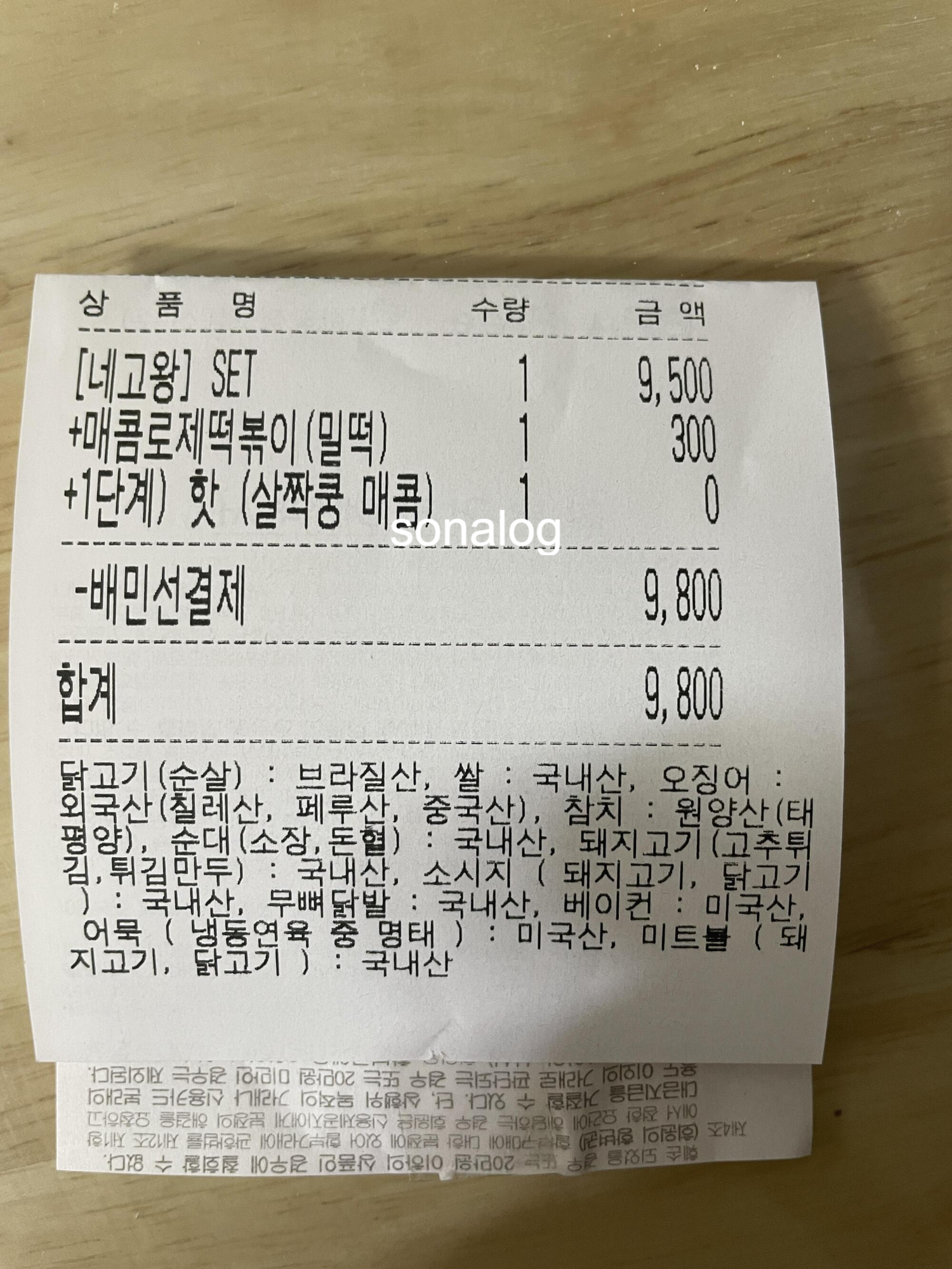 네고왕 세트에는 치킨 소스가 포함이 되어있지 않습니다 ㅜㅜ
