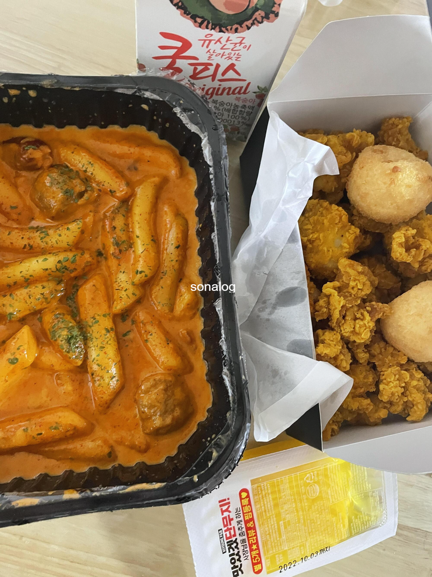 떡볶이 + 치킨 + 치즈볼 + 쿨피스 + 단무지