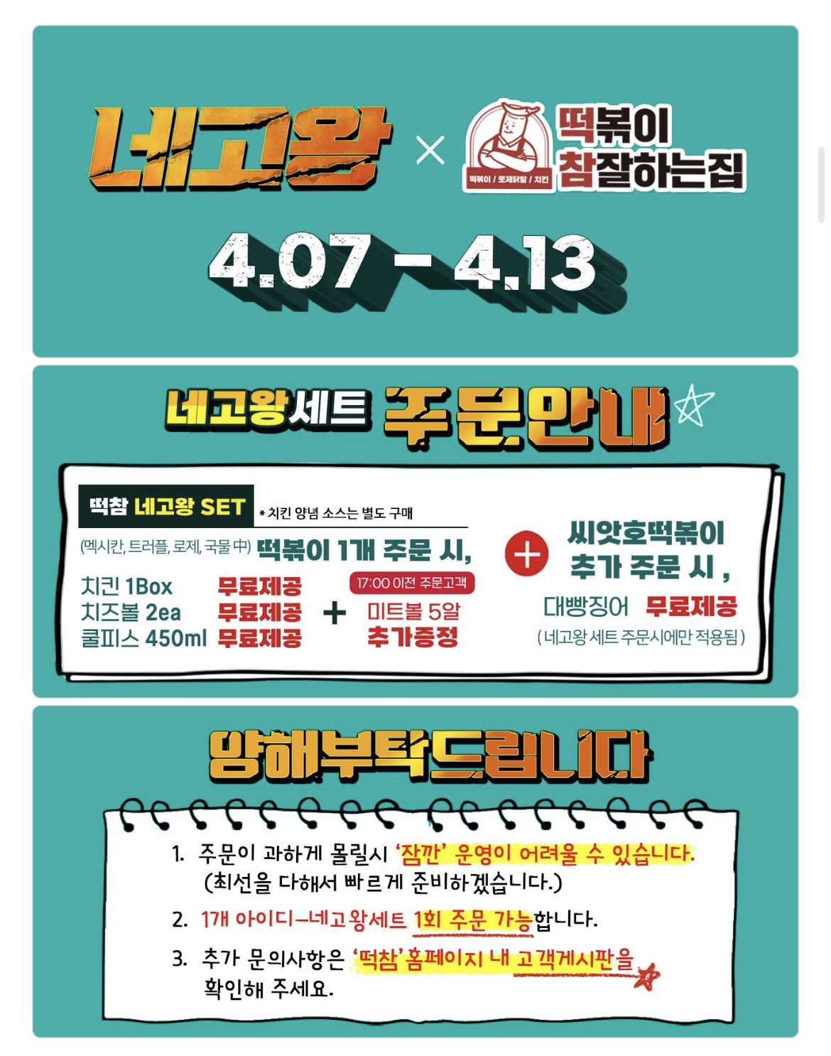 일단 주문하려는 지점이 네고왕 이벤트에 참여 하는 지점인지 확인해주셔야해요