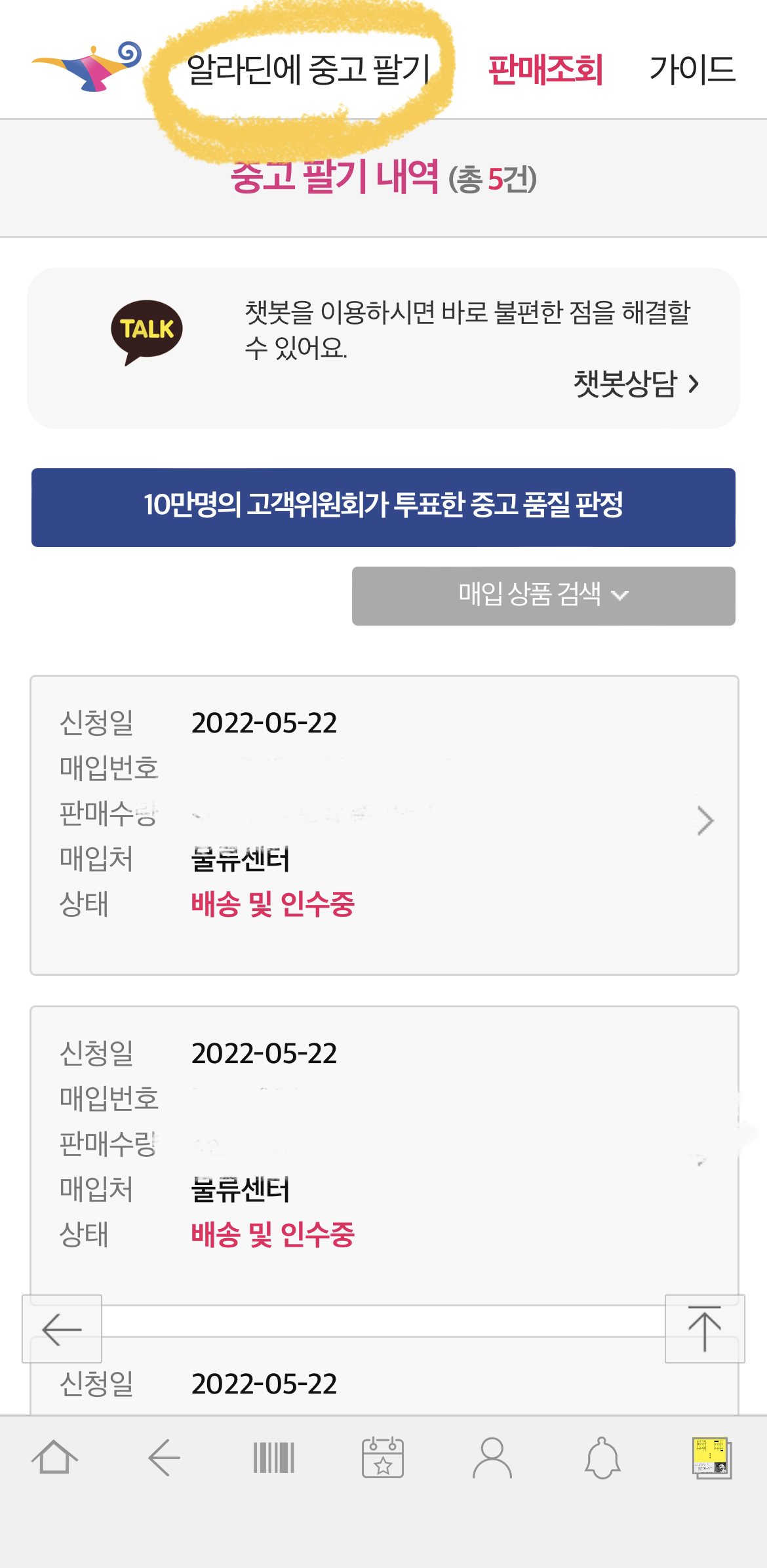 5월 22일 알라딘 중고상품 판매하기 신청