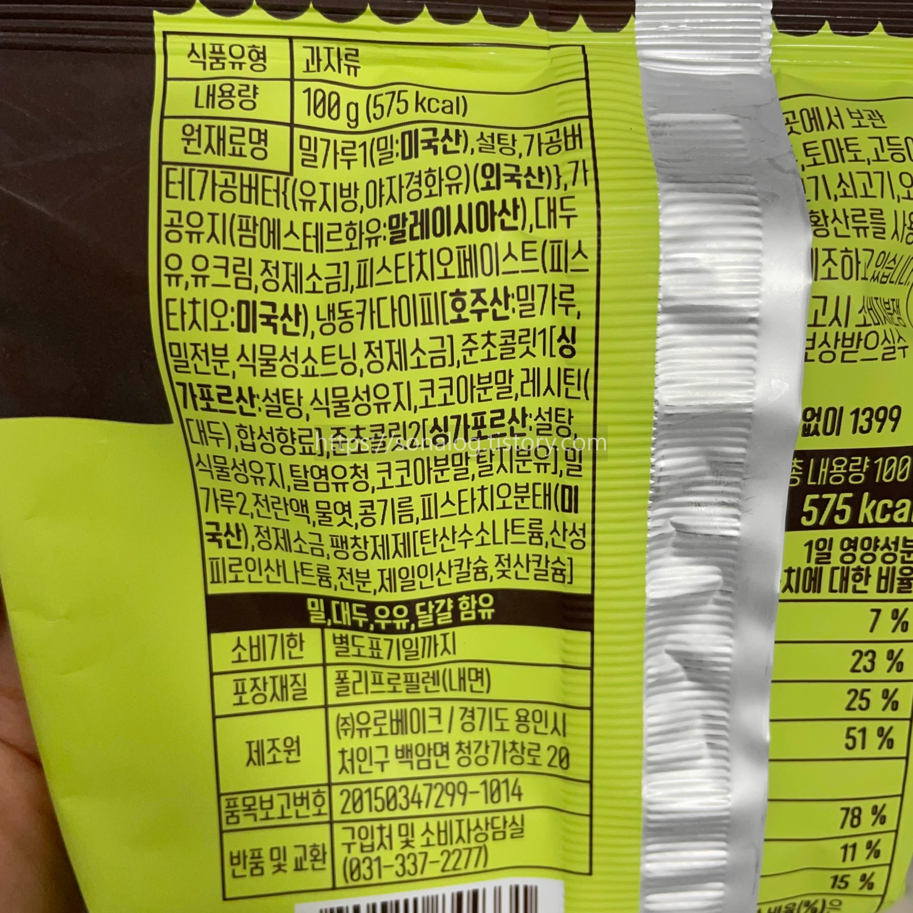 2. 이웃집통통이 두바이식 초코쿠키 영양성분/보관법
