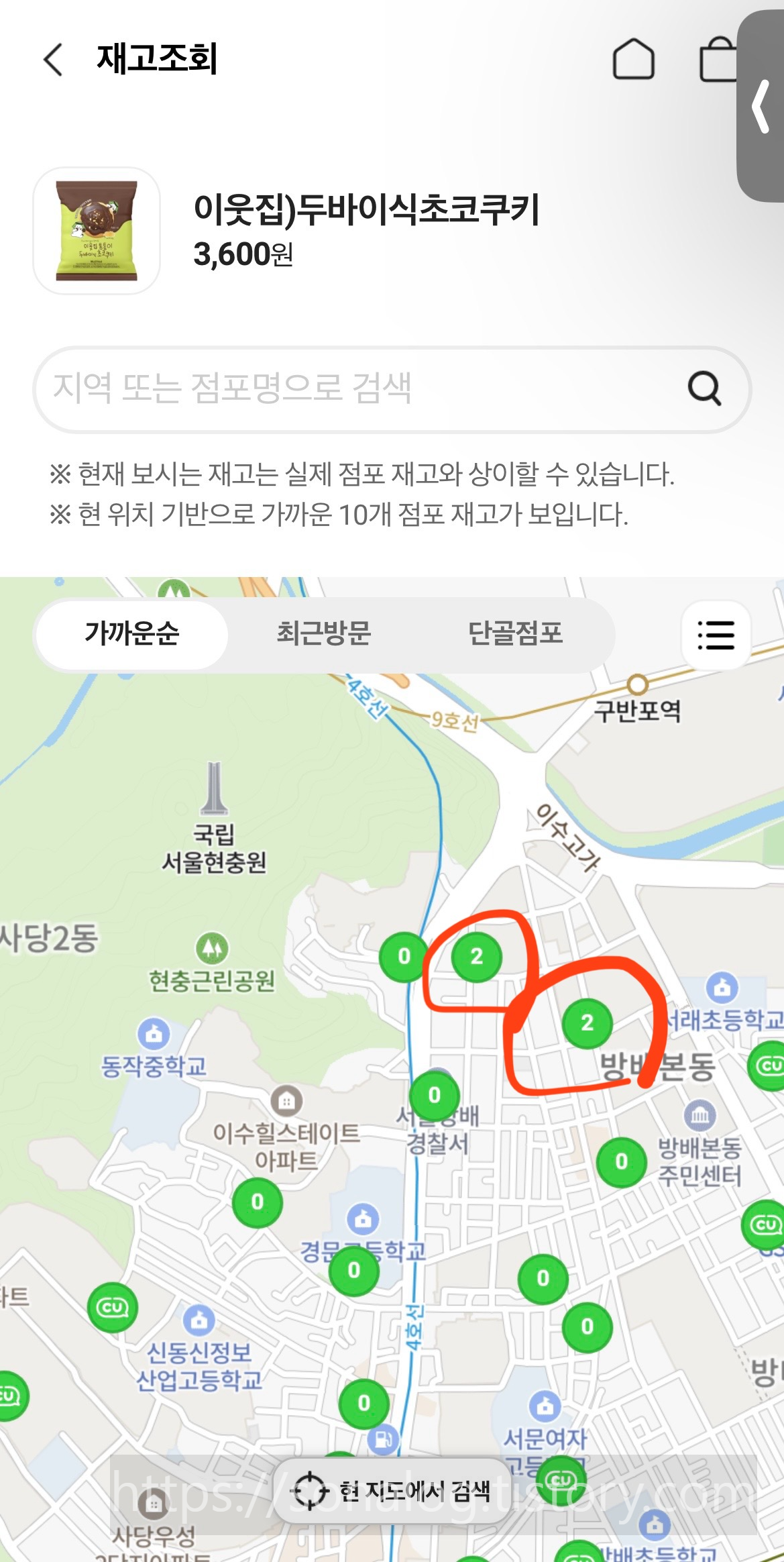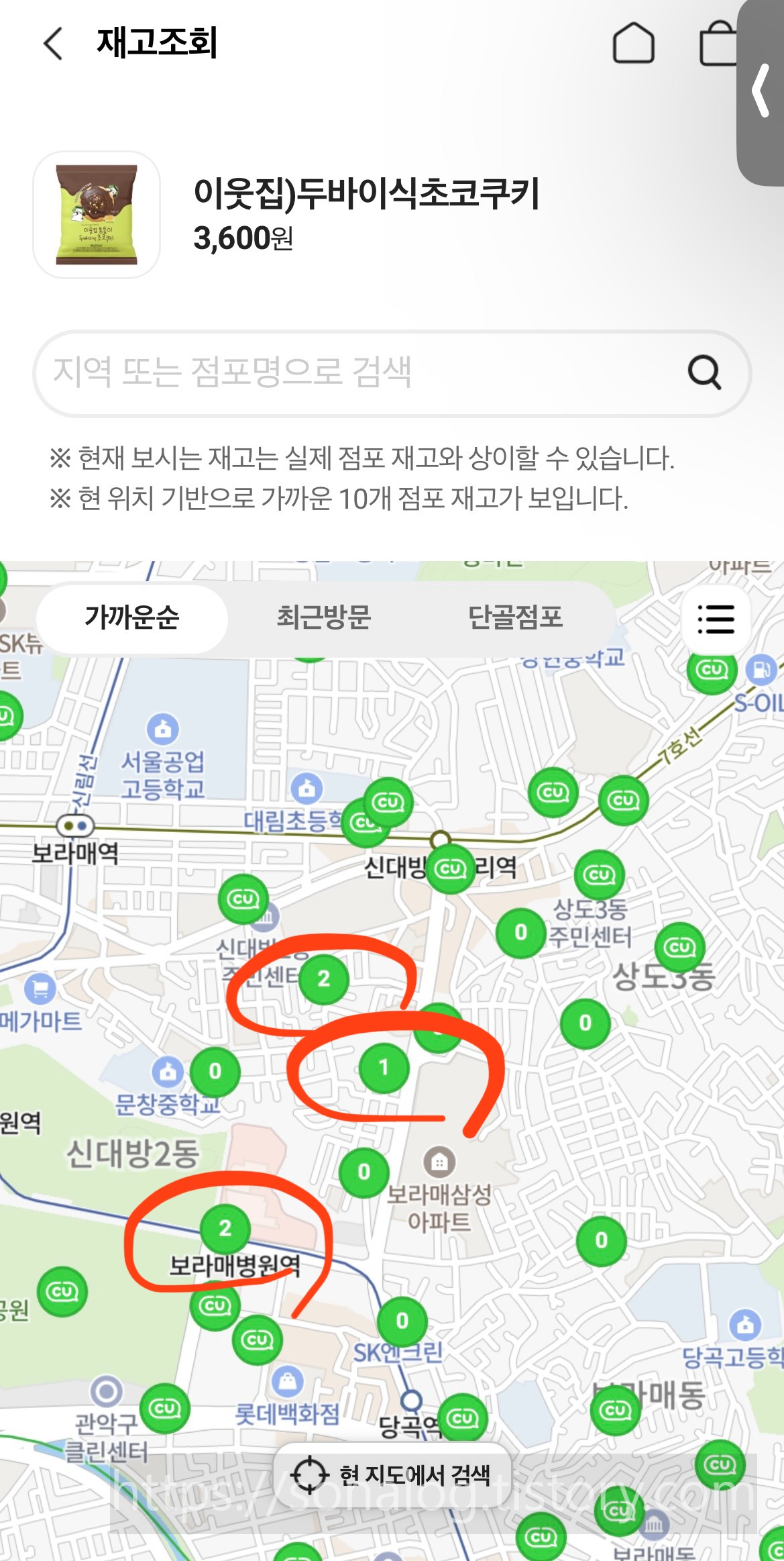열심히 포켓cu 재고조회를 한 결과